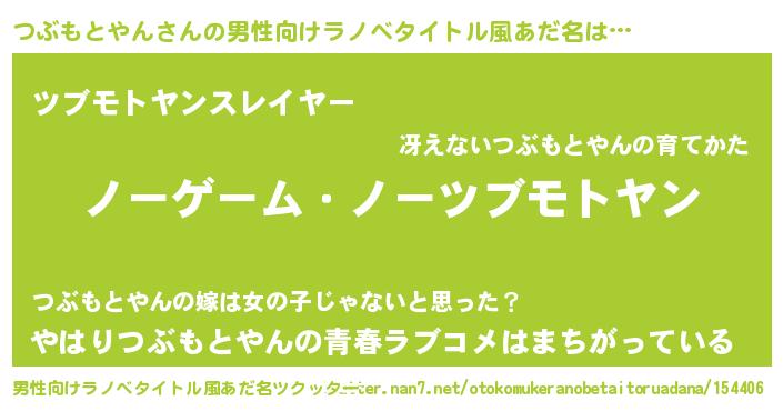 | 女子向けラノベタイトル風あだ名 | 『死神つぶもとやんの再婚』 |