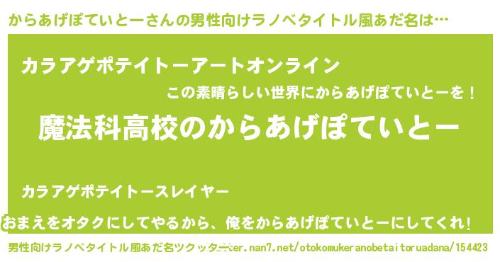 | 意味不明あだ名 | 『自称からあげぽていとー』 |