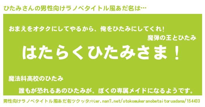 | ヒーロー風カッコイイあだ名 | 『正義の使者ひたみ』『ネオヒタミ』 |