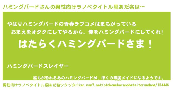 | 女子向けラノベタイトル風あだ名 | 『首の姫と首なしハミングバード』 |