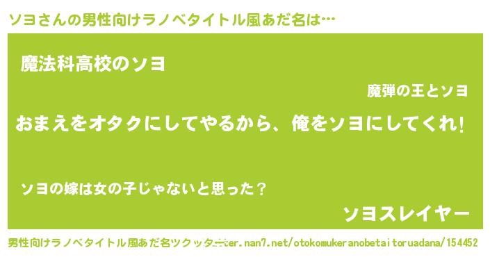 | 女子向けラノベタイトル風あだ名 | 『ソヨ恋絵巻』『ソヨアンティーク』 |