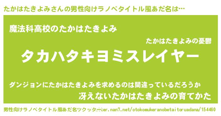 | 料理風あだ名 | 『たかはたきよみごはん』 |