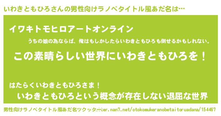 | 意味不明あだ名 | 『住所不定無職いわきともひろ(56歳)』 |