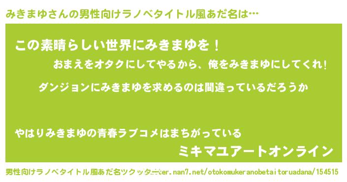 | ピコ太郎風あだ名 | 『ミキ二郎』『ミコ二郎』『ミミ太郎』 |