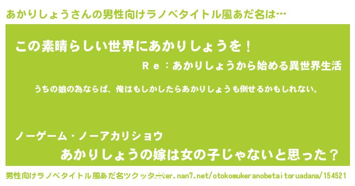 | 女子向けラノベタイトル風あだ名 | 『あかりしょうの婚約者』 |