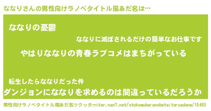 ななりさんの男性向けラノベタイトル風あだ名をツクッター!