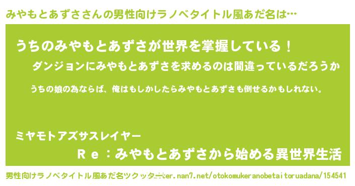 | 女子向けラノベタイトル風あだ名 | 『みやもとあずさの婚約者』 |