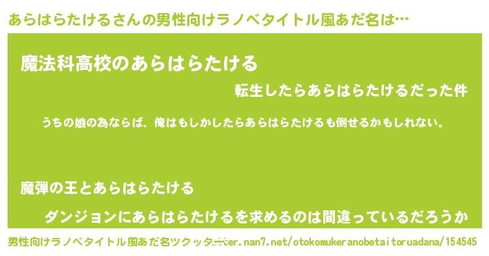 | 女子向けラノベタイトル風あだ名 | 『あらはらたけるの婚約者』 |