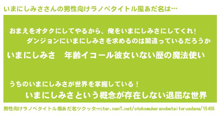 | ヒーロー風カッコイイあだ名 | 『慈愛の使者いまにしみさ』 |