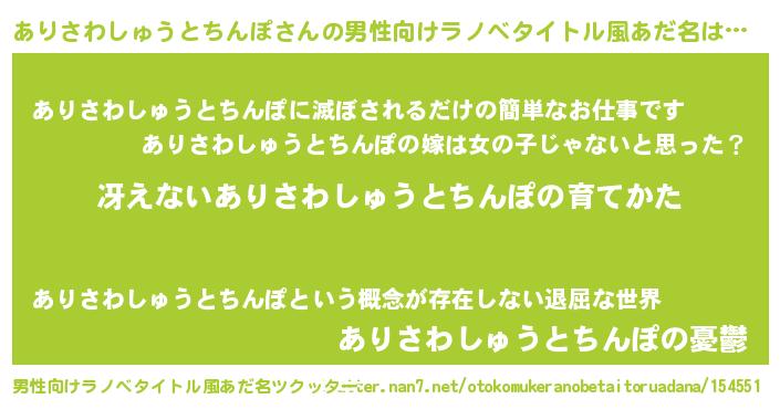 | 女子向けラノベタイトル風あだ名 | 『シンデレラありさわしゅうとちんぽ家の靴箱館』 |