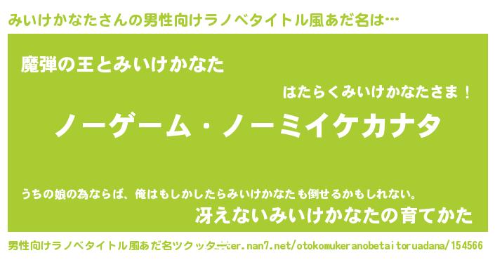 | 女子向けラノベタイトル風あだ名 | 『死神みいけかなたの再婚』 |