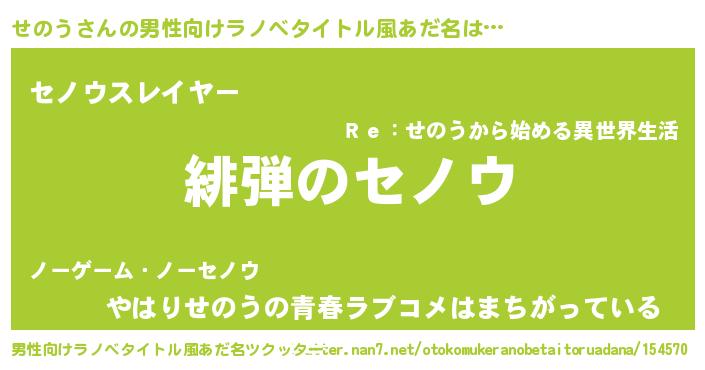 | ヒーロー風カッコイイあだ名 | 『ウルトラせのうマン』『仮面セノダー』 |
