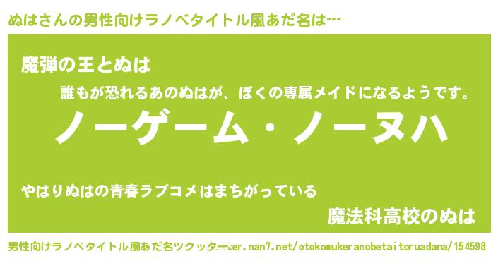 | 女子向けラノベタイトル風あだ名 | 『死神ぬはの再婚』『ぬはの雑貨屋さん』 |