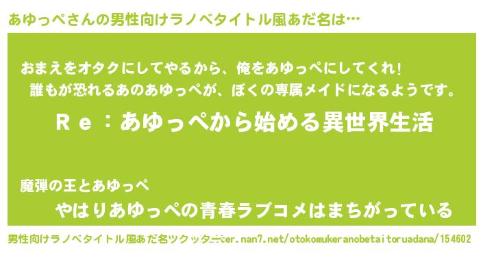 | 意味不明あだ名 | 『自称あゆっぺ』『あゆっぺフォーエバー』 |
