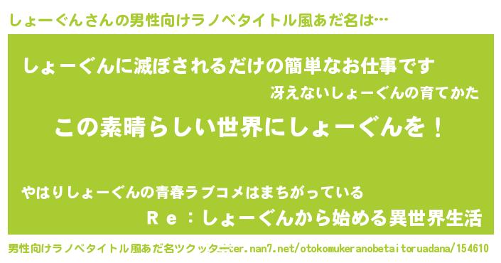 | 意味不明あだ名 | 『住所不定無職しょーぐん(65歳)』 |