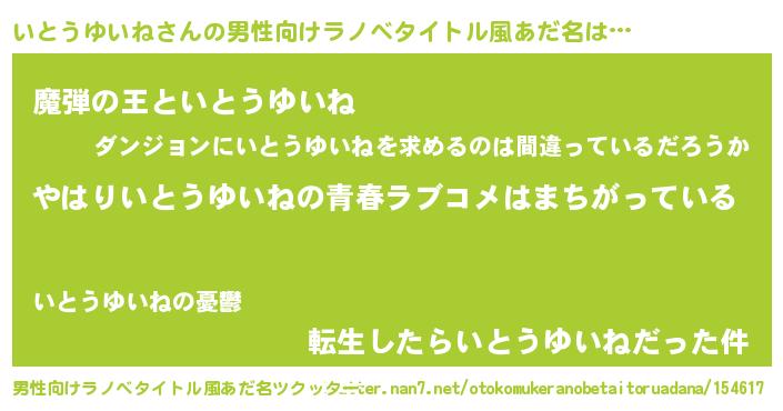 いとうゆいねさんの男性向けラノベタイトル風あだ名をツクッター!