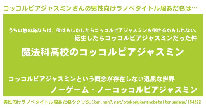| 女子向けラノベタイトル風あだ名 | 『コッコルピアジャスミンアンティーク』 |
