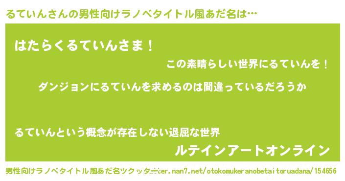 | 女子向けラノベタイトル風あだ名 | 『るていんは平凡を望む』 |