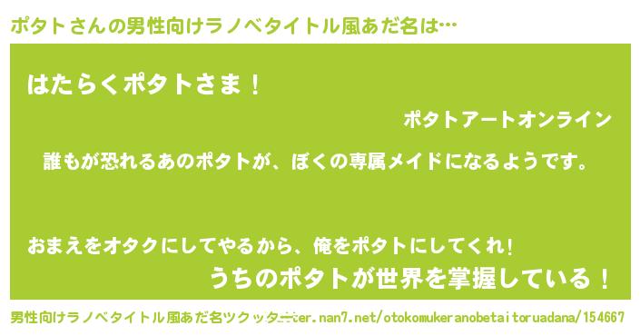 | 女子向けラノベタイトル風あだ名 | 『異世界でカフェポタトを開店しました。』 |