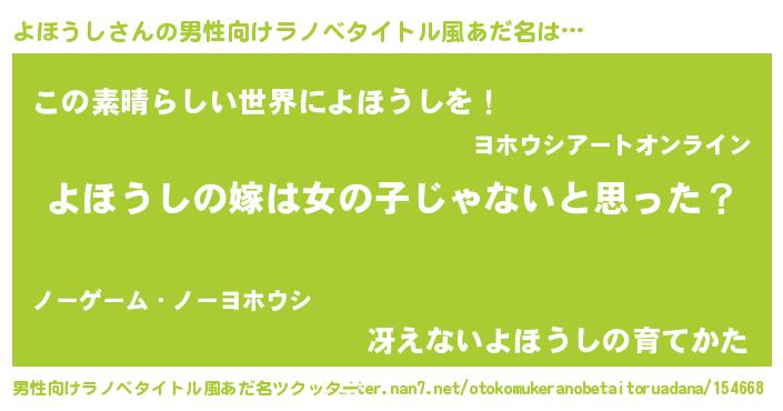 | 女子向けラノベタイトル風あだ名 | 『よほうし様がみてる』 |