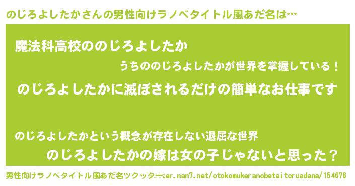 | 女子向けラノベタイトル風あだ名 | 『横柄のじろよしたかと宰相陛下』 |