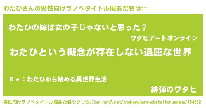 | 胡散臭い通販商品みたいなあだ名 | 『来世でも幸せになれる水素水…その名も「わたひ」』 |