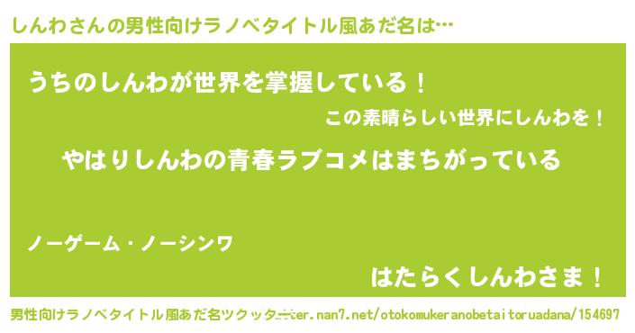 | 女子向けラノベタイトル風あだ名 | 『しんわの雑貨屋さん』『しんわ恋絵巻』 |