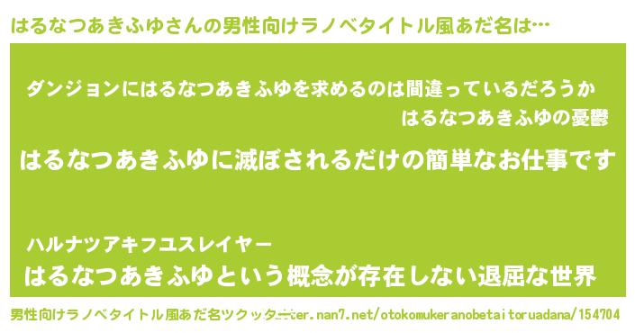 | 伝説のあだ名 | 『覚醒した遊び人はるなつあきふゆ』 |
