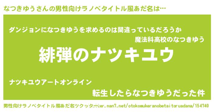 | ヒーロー風カッコイイあだ名 | 『暗黒騎士ナツ』『スーパーナツキユウ』 |