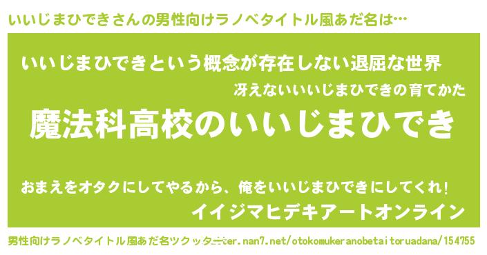 | ヘコむあだ名 | 『いいじまひでき(爆)』『いいにゅー』 |
