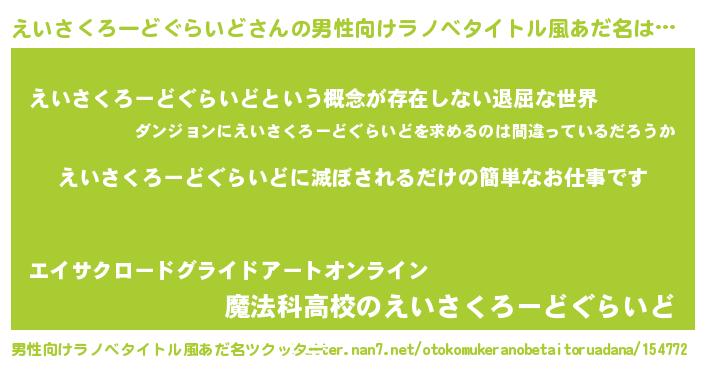 | ヘコむあだ名 | 『えいさくろーどぐらいど(小並感)』 |