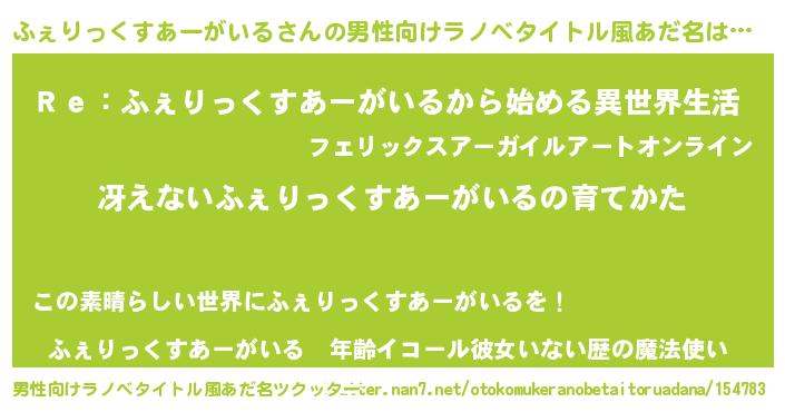 | ヒーロー風カッコイイあだ名 | 『サイバー戦士フェリックスアーガイル』 |