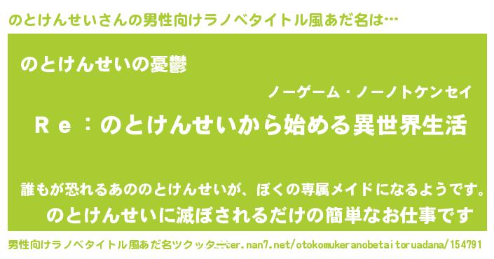 | 女子向けラノベタイトル風あだ名 | 『のとけんせいストレイドッグス』 |
