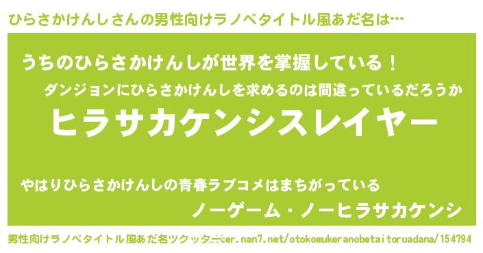 | 料理風あだ名 | 『ひらさかけんしごはん』 |