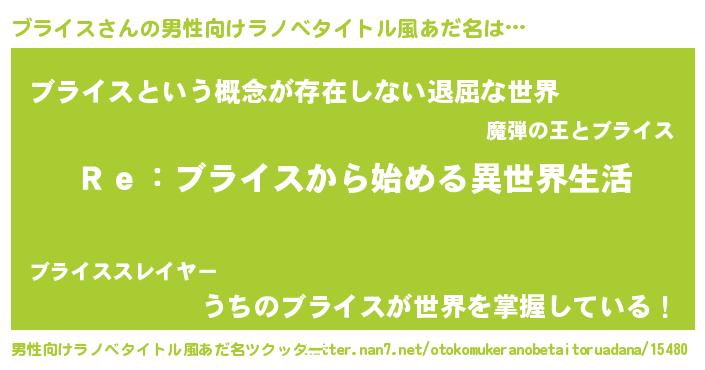 | 女子向けラノベタイトル風あだ名 | 『闇のブライス』『ブライスの契約王妃』 |