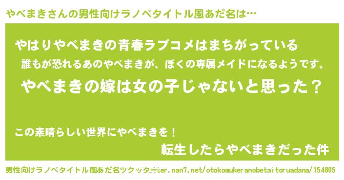 | 意味不明あだ名 | 『とにかく怪しいやべまき』 |