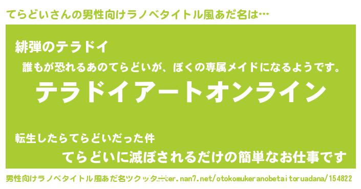 | 胡散臭い通販商品みたいなあだ名 | 『モテモテ間違いなし霊験あらたかなお札…その名も「てらどい」』 |