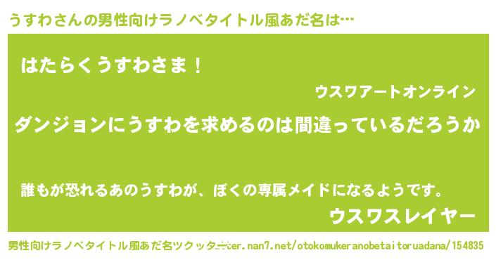 | 意味不明あだ名 | 『とにかく怪しいうすわ』 |
