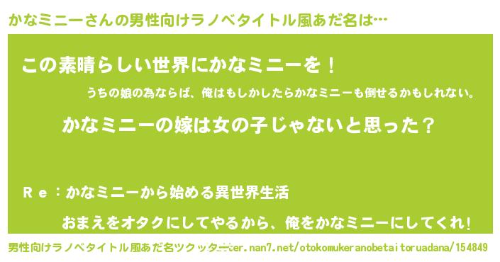 | 女子向けラノベタイトル風あだ名 | 『かなミニー様がみてる』 |