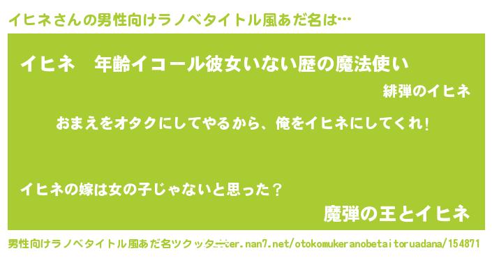 | ヒーロー風カッコイイあだ名 | 『正義の使者イヒネ』『仮面イヒダー』 |