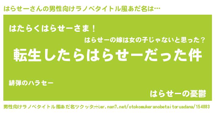 | 胡散臭い通販商品みたいなあだ名 | 『モテモテ間違いなし霊験あらたかなお札…その名も「はらせー」』 |