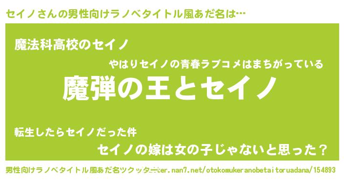 | 意味不明あだ名 | 『住所不定無職セイノ(1歳)』『自称セイノ』 |