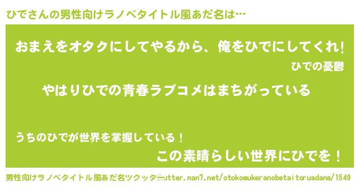 | 女子向けラノベタイトル風あだ名 | 『ひでの雑貨屋さん』 |