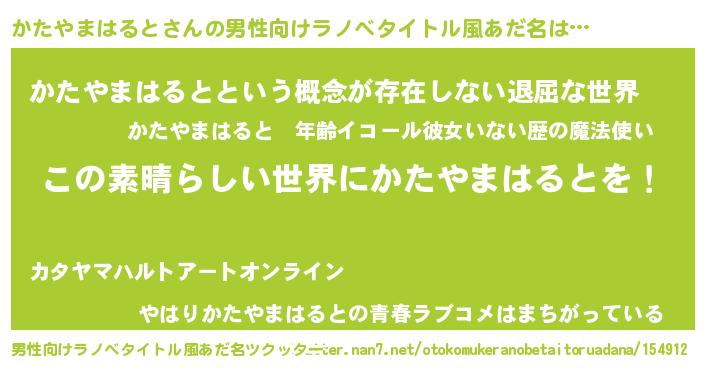 | 女子向けラノベタイトル風あだ名 | 『悪役かたやまはるとに転生したようですが、知った事ではありません』 |