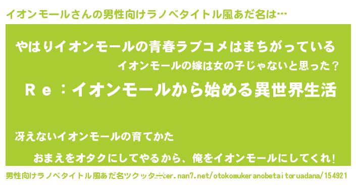 | 女子向けラノベタイトル風あだ名 | 『闇のイオンモール』 |