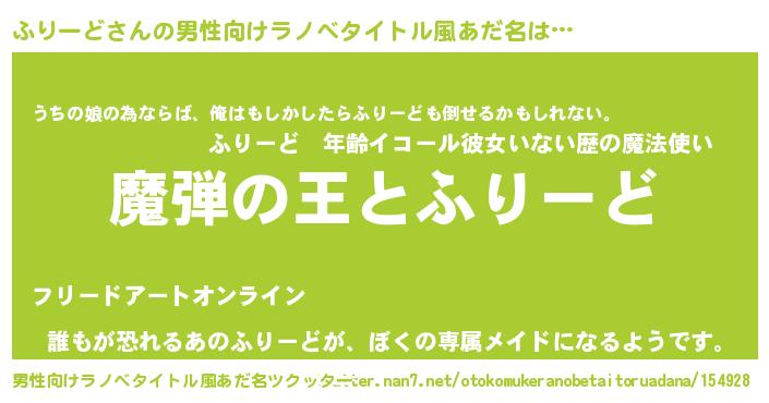 | ヒーロー風カッコイイあだ名 | 『仮面フリダー』『ウルトラふりーどマン』 |