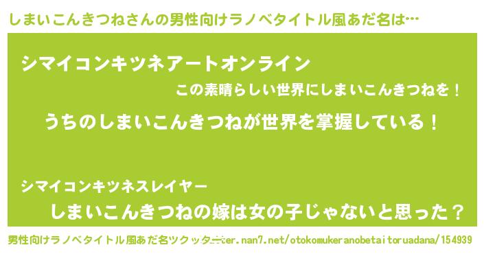 | 胡散臭い通販商品みたいなあだ名 | 『億万長者になれるブレスレット…その名も「しまいこんきつね」』 |