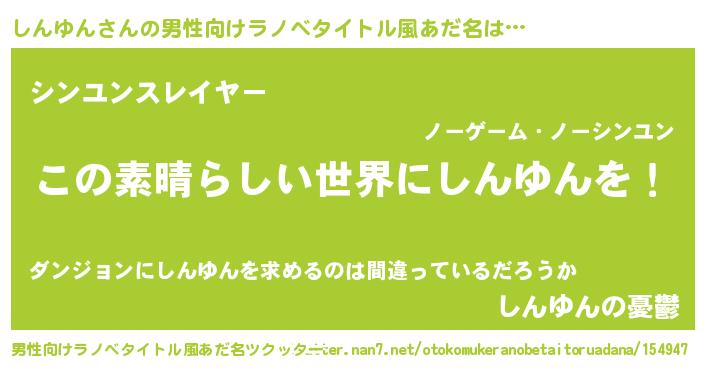 | 胡散臭い通販商品みたいなあだ名 | 『あなたにだけ特別に提供する100年もののヴィンテージワイン…その名も「しんゆん」』 |