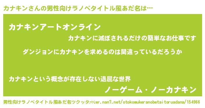 | 胡散臭い通販商品みたいなあだ名 | 『信頼と実績のペンダント…その名も「カナキン」』 |