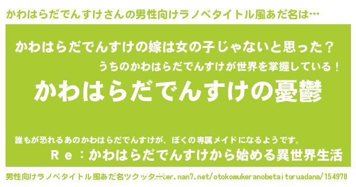 | 女子向けラノベタイトル風あだ名 | 『かわはらだでんすけ姫と円卓の騎士』 |